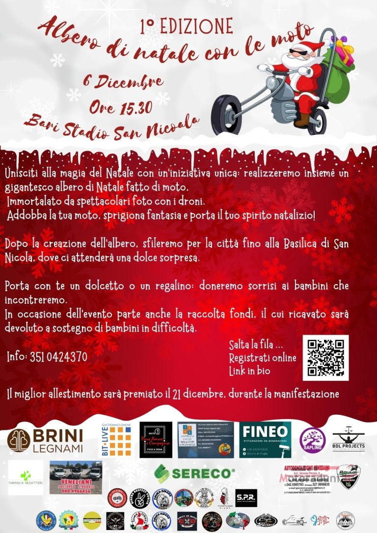 Unisciti alla magia del Natale con un’iniziativa unica: realizzeremo insieme un gigantesco albero di Natale fatto di moto.