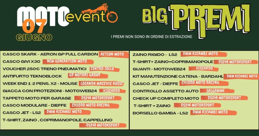 Aperitivo, esposizione di moto d’epoca e estrazione premi