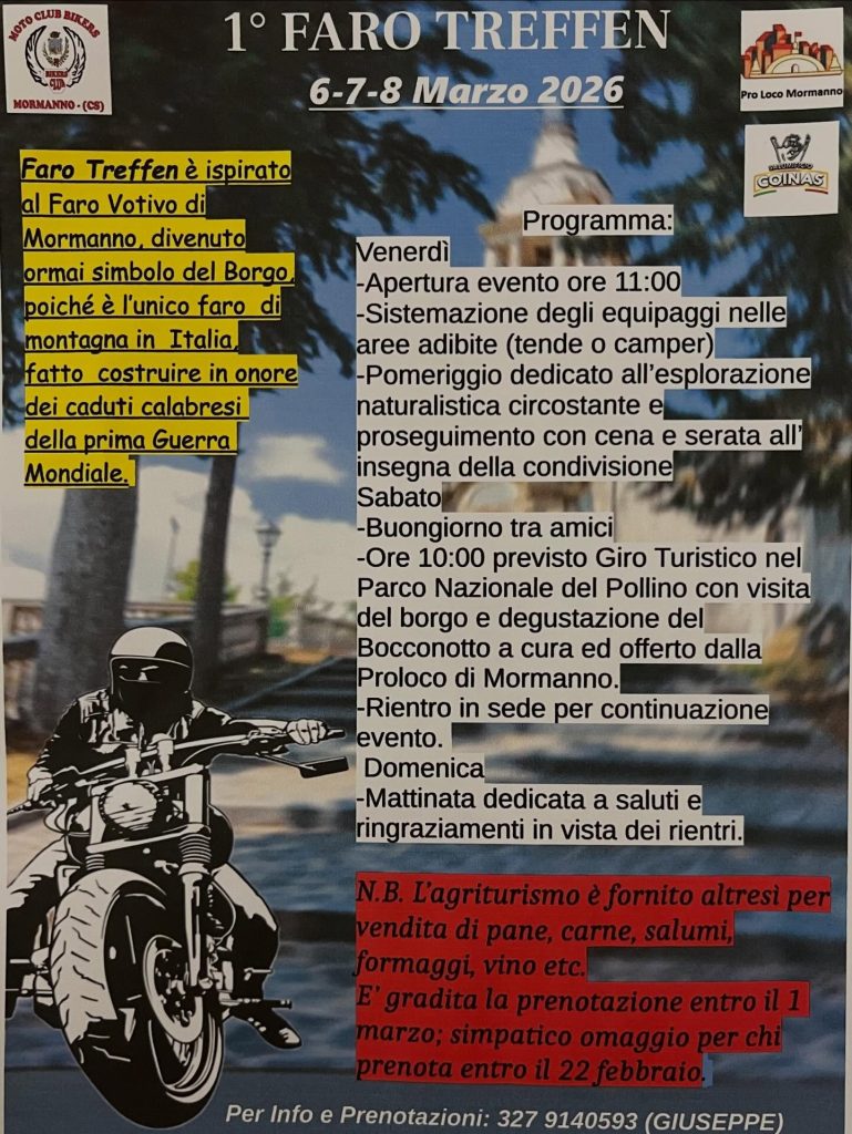 -Ore 10:00 previsto Giro Turistico nel Parco Nazionale del Pollino con visita del borgo e degustazione del Bocconotto a cura ed offerto dalla Proloco di Mormanno.