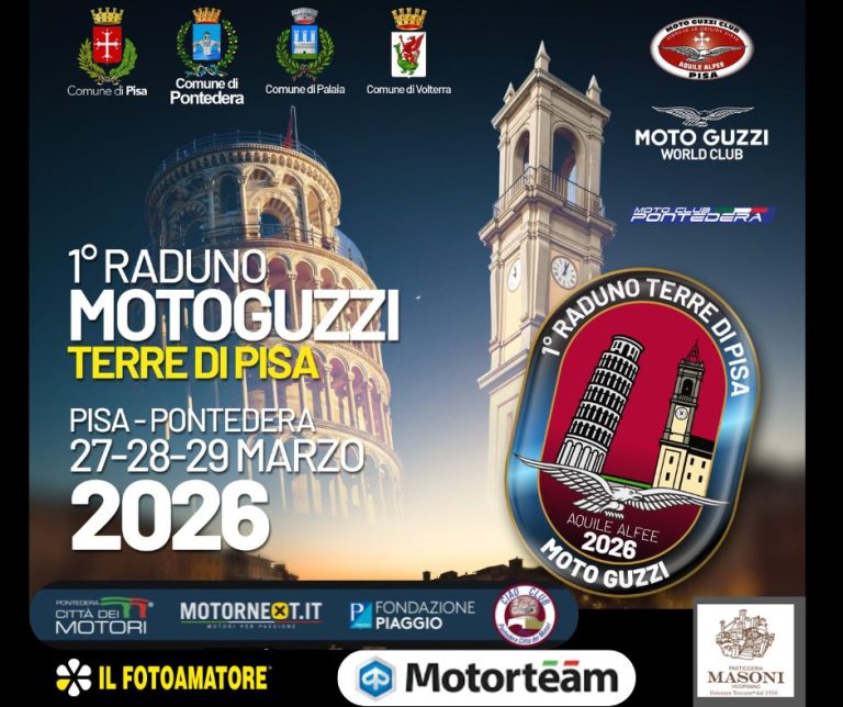 Il 1° Raduno Moto Guzzi Terre di Pisa nasce per celebrare la passione Guzzi attraverso alcuni dei territori più affascinanti della Toscana: Pisa, Pontedera, Volterra e la Valdera.