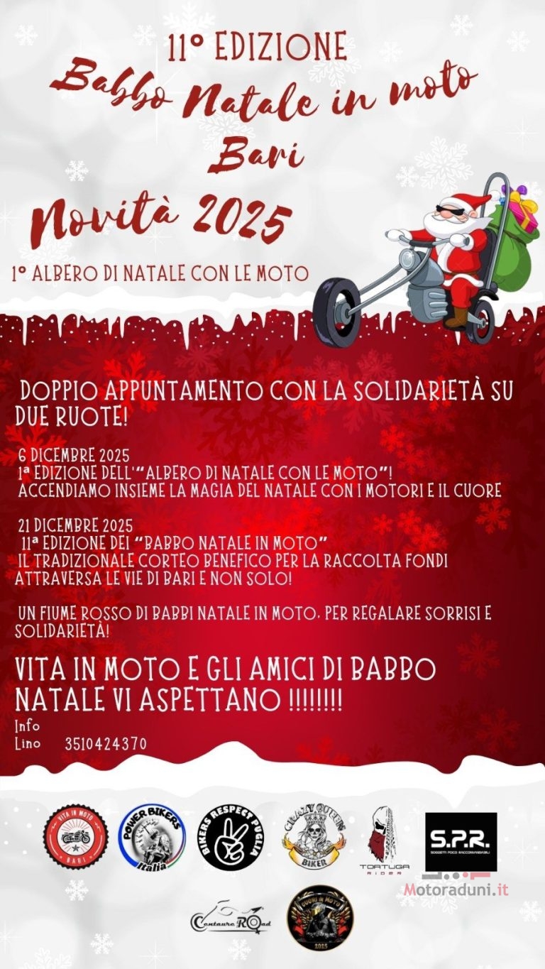 11ª EDIZIONE DEI “BABBO NATALE IN MOTO” IL TRADIZIONALE CORTEO BENEFICO PER LA RACCOLTA FONDI ATTRAVERSA LE VIE DI BARI E NON SOLO!