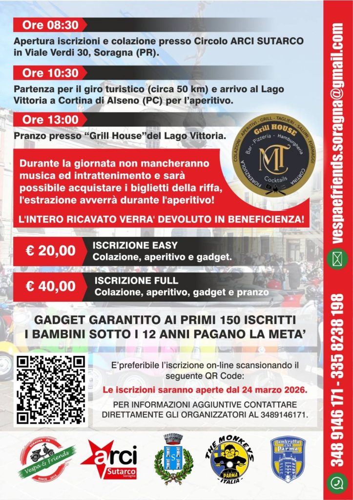 Ore 08:30 Apertura iscrizioni e colazione presso Circolo ARCI SUTARCO in Viale Verdi 30, Soragna (PR).