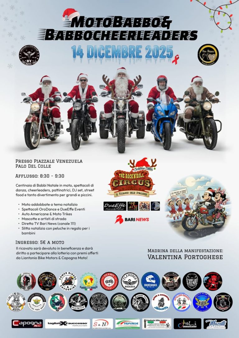 Centinaia di Babbi Natale in moto, spettacoli di danza, cheerleaders, pattinatrici, DJ set, street food e tanto divertimento per grandi e piccini.