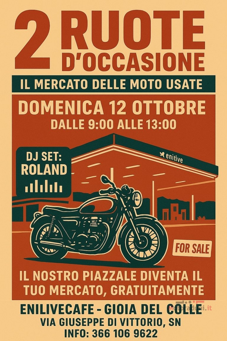 Il prossimo 12 Ottobre presso la nostra Enilive Station di Gioia del Colle, si terrà la prima edizione del “2 Ruote d’Occasione”.