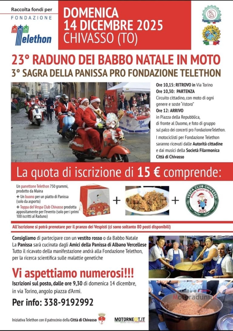 + Toppa del Vespa Club Chivasso prodotta appositamente per l’evento (solo per i primi 100 iscritti al Raduno)