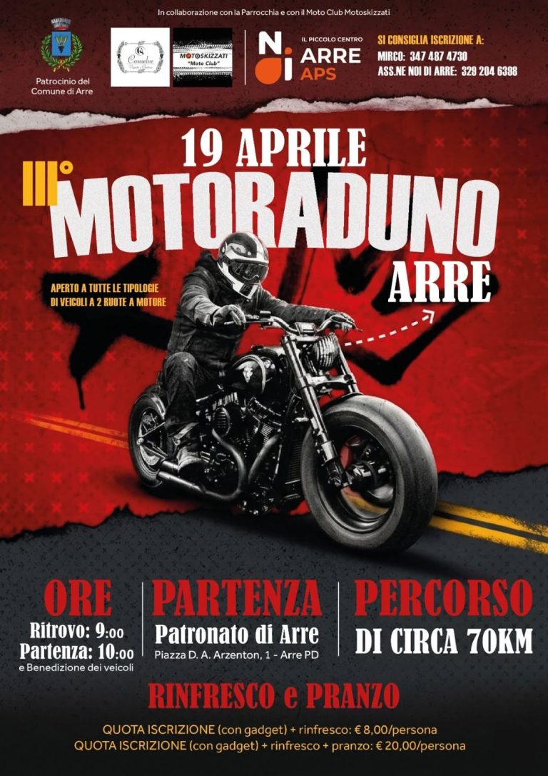 Il 3° Motoraduno di Arre ti aspetta domenica 19 aprile per un evento aperto a tutti i veicoli a 2 ruote a motore.