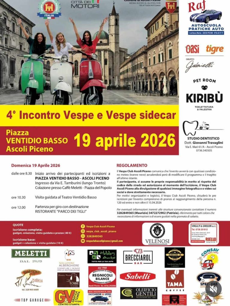 • dalle ore 8.30 Inizio arrivo dei partecipanti ed iscrizioni a PIAZZA VENTIDIO BASSO – ASCOLI PICENO