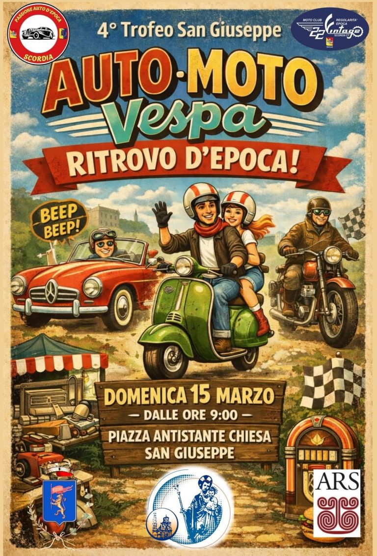 Auto storiche, moto vintage e Vespa leggendarie si ritroveranno a Scordia per condividere passione, amicizia e tradizione, in una giornata allโinsegna della convivialitร e dellโamore per i motori che hanno fatto epoca.