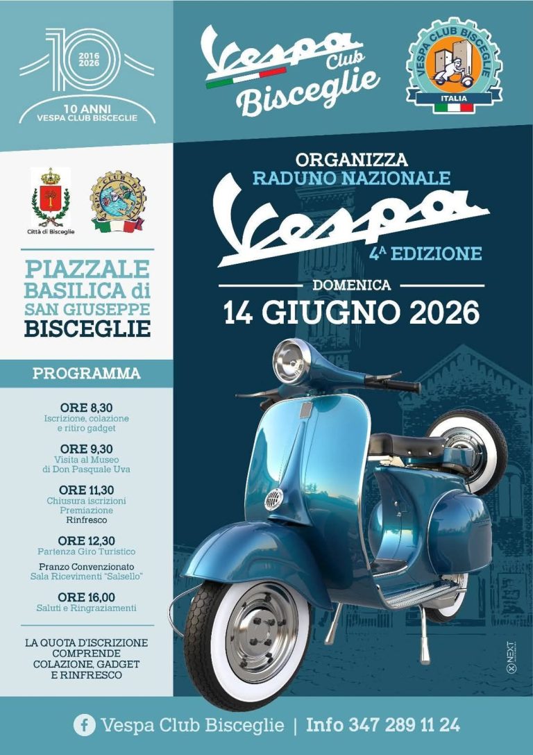 ​Vespisti di tutta Italia, scaldate i motori! Il Vespa Club Bisceglie compie 10 anni e stiamo preparando il raduno del decennio. Non è solo un incontro, è il compleanno di una grande famiglia e vogliamo festeggiarlo con VOI!