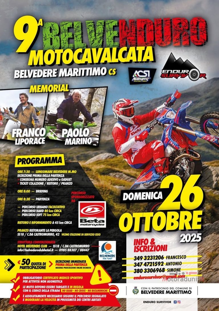 LE MOTO DEVONO ESSERE TARGATE E IN REGOLA CON IL CODICE DELLA STRADA – NO QUAD • NO CROSS • NO BICILINDRICHE