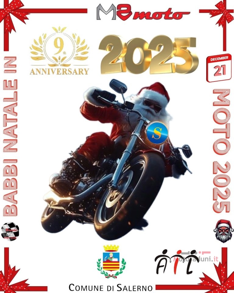 L’evento natalizio più divertente ed atteso a Salerno “Babbi Natale in Moto 2025” è pronto a creare un’atmosfera festosa con la sua 9* Edizione il 21 Dicembre 2025