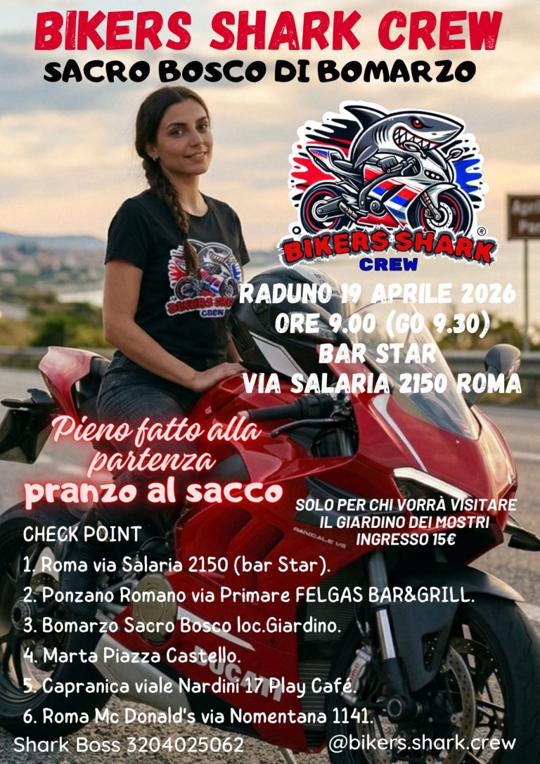 MOTOGIRO direzione giardini dei Mostri di Bomarzo con partenza 19.04.2026 ore 9.30 da Castel Gandolfo via spiaggia del Lago (parcheggio Tortuga Club).