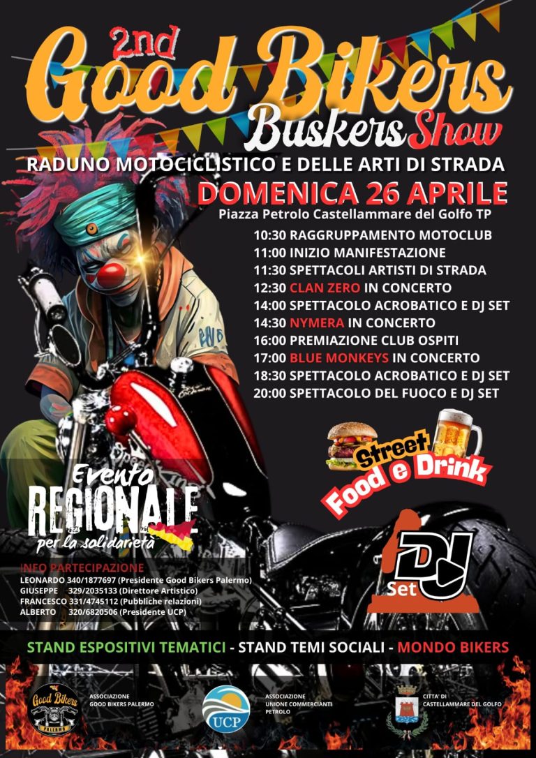 Seconda edizione del Good Bikers Buskers show, l’evento che raggruppa moto e artisti di strada, evento aperto a tutti e tutti i tipi di moto.