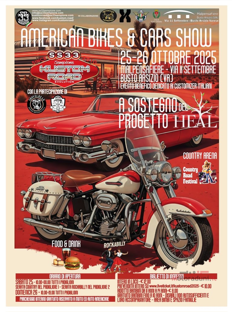 Torna a Busto Arsizio (VA), nello storico polo fieristico di MalpensaFiere – Centro Fiere Congressi ed Eventi, il 25 e 26 ottobre, la quattordicesima edizione di Kustom Road, l’evento benefico organizzato dal Motoclub SS33 Sempione.