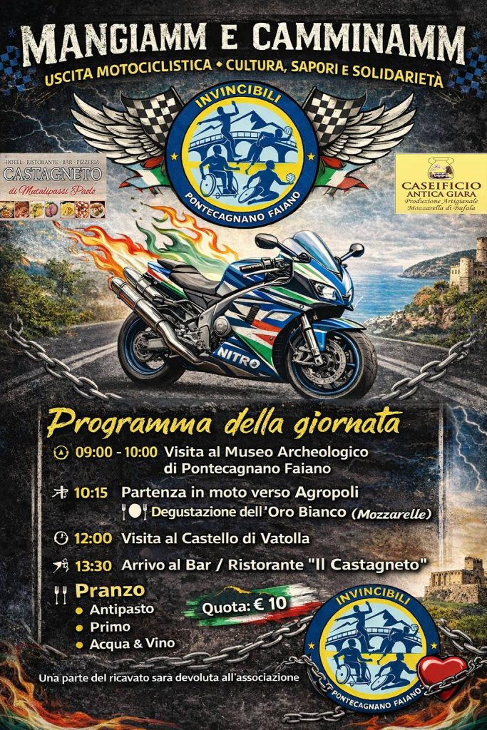 • 10:15 Partenza in moto verso Agropoli – Degustazione dell’Oro Bianco (Mozzarelle)