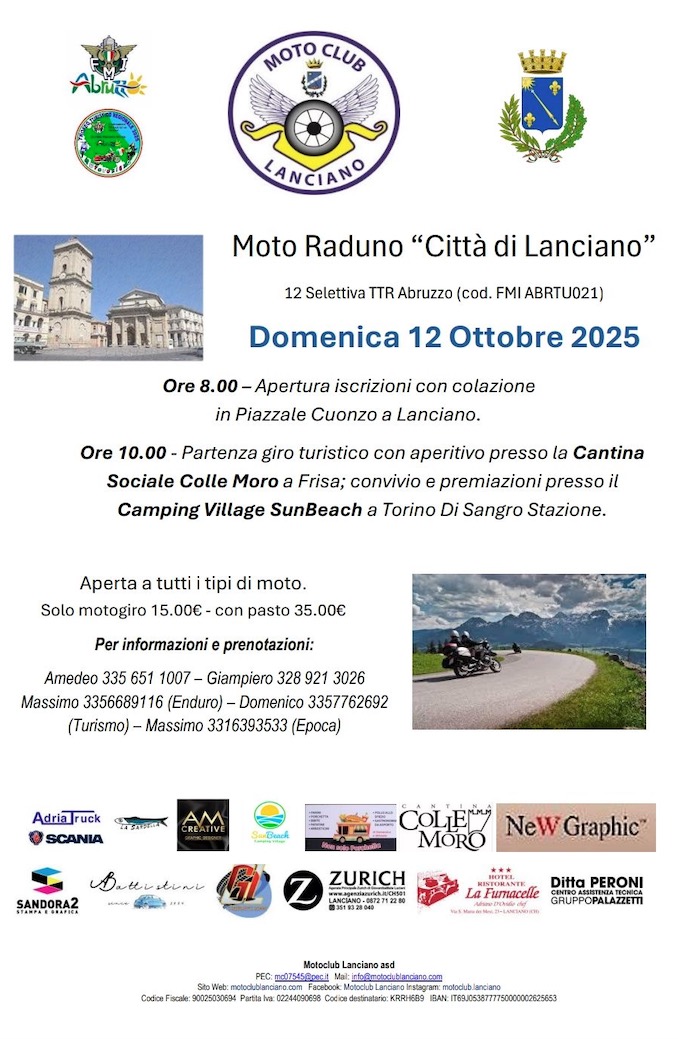Massimo 3356689116 (Enduro) – Domenico 3357762692 (Turismo) – Massimo 3316393533 (Epoca)