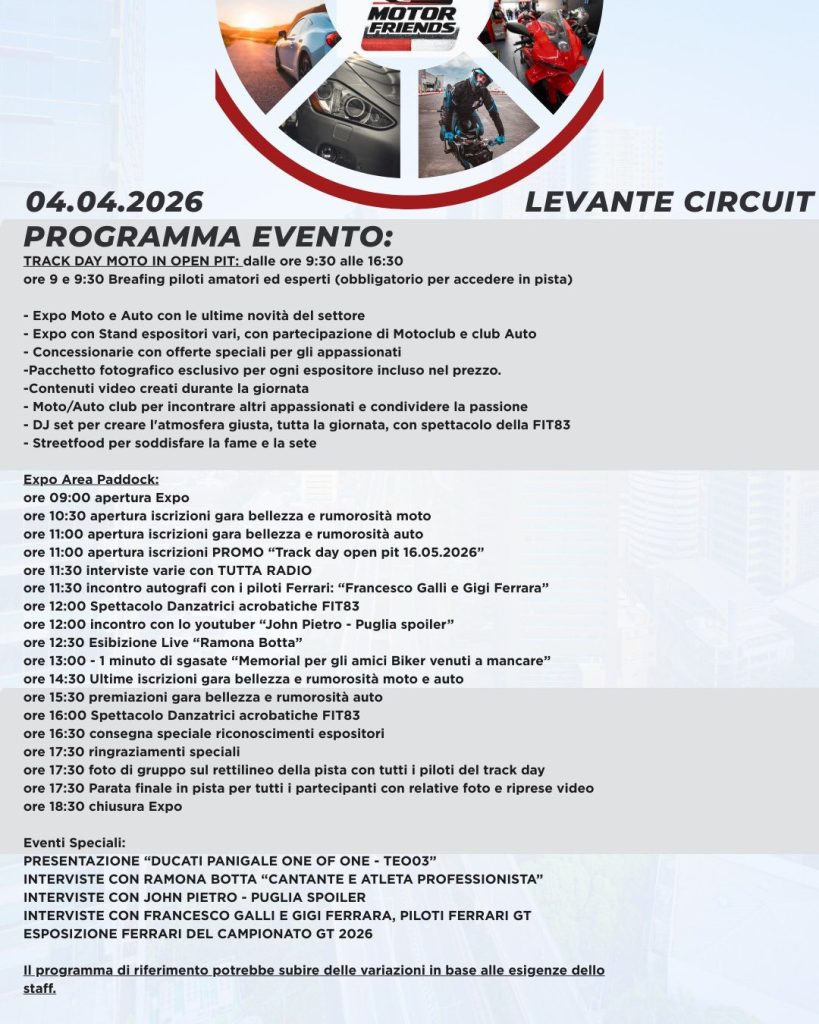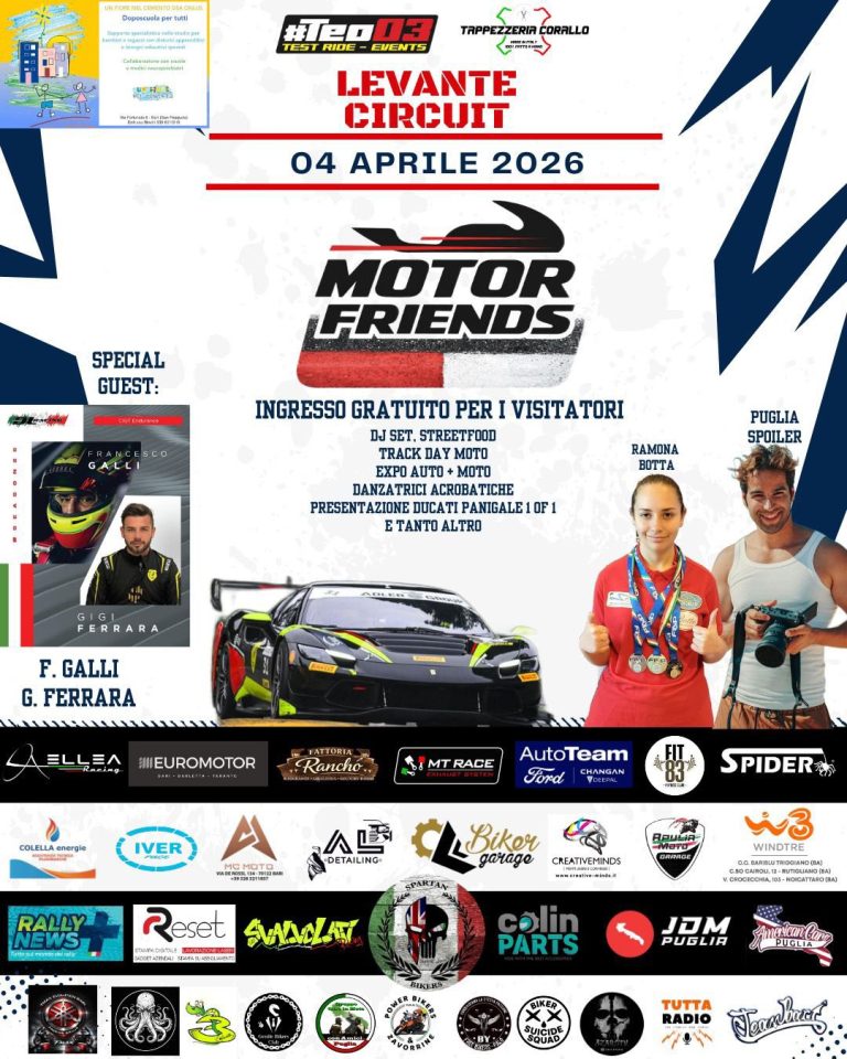 Il 4 aprile all’Autodromo del Levante di Binetto arriva il Motor Friends, evento dedicato al motorsport.