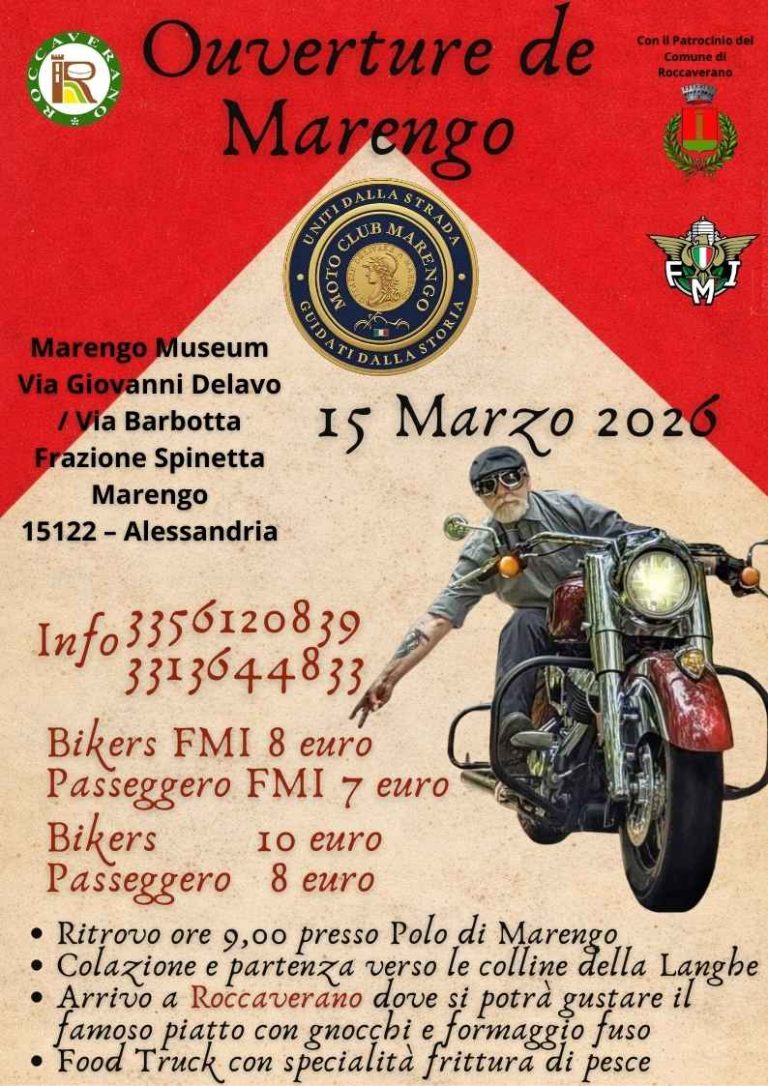 Ritrovo presso il Polo Museale di Marengo, colazione e partenza per un tour nelle colline delle Langhe. Ritrovo a Roccaverano dove si potranno gustare i prodotti locali, nello specifico un piatto tipico formato da gnocchi e Formaggio fuso, con ottimo vino. Per gli amanti del pesce ci sarà un Food Truck con frittura di pesce a volontà. Iscrizione comprensiva di colazione e patch, euro 10.