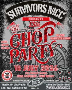Vi aspettiamo il 18 luglio 2026 per festeggiare il 13° Chop Party dei Survivors MCC ... continua: >