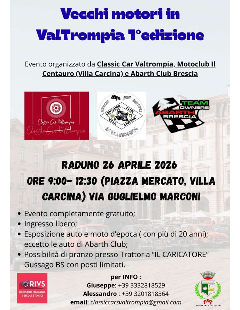 • Esposizione auto e moto d’epoca ( con più di 20 anni) – eccetto le auto di Abarth Club;