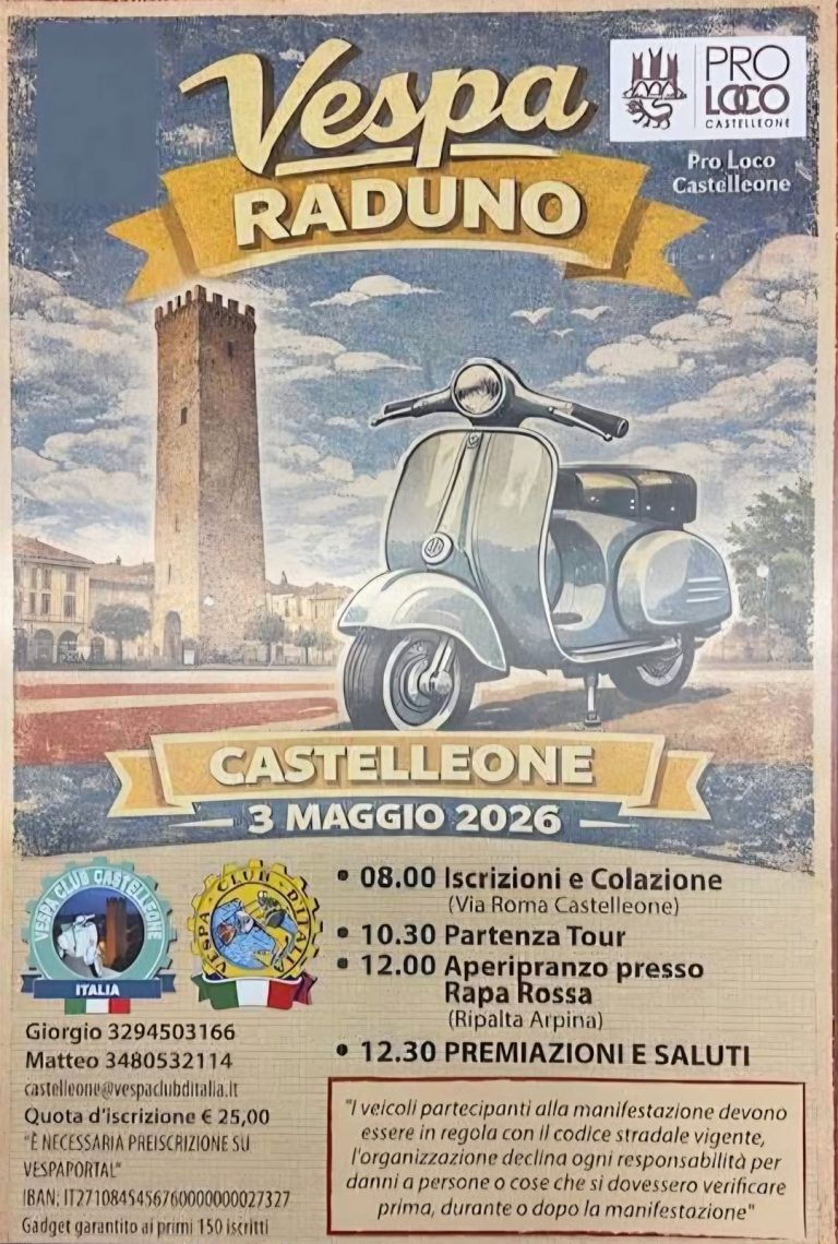 • 08.00 Iscrizioni e Colazione (Via Rorna Castelleone)
