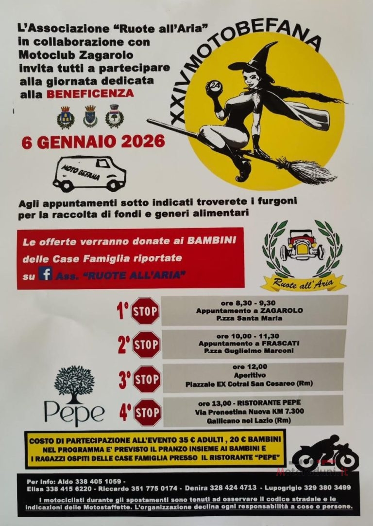 Apriamo l’anno come sempre con la MOTOBEFANA DEI CASTELLI ROMANI ormai alla XXIV edizione (Evento benefico per le case famiglie dei castelli romani)