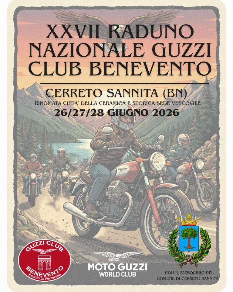 Il Guzzi Club Benevento è lieto di invitarvi al raduno che si terrà il 26, 27 e 28 giugno 2026 nella splendida cornice di Cerreto Sannita.